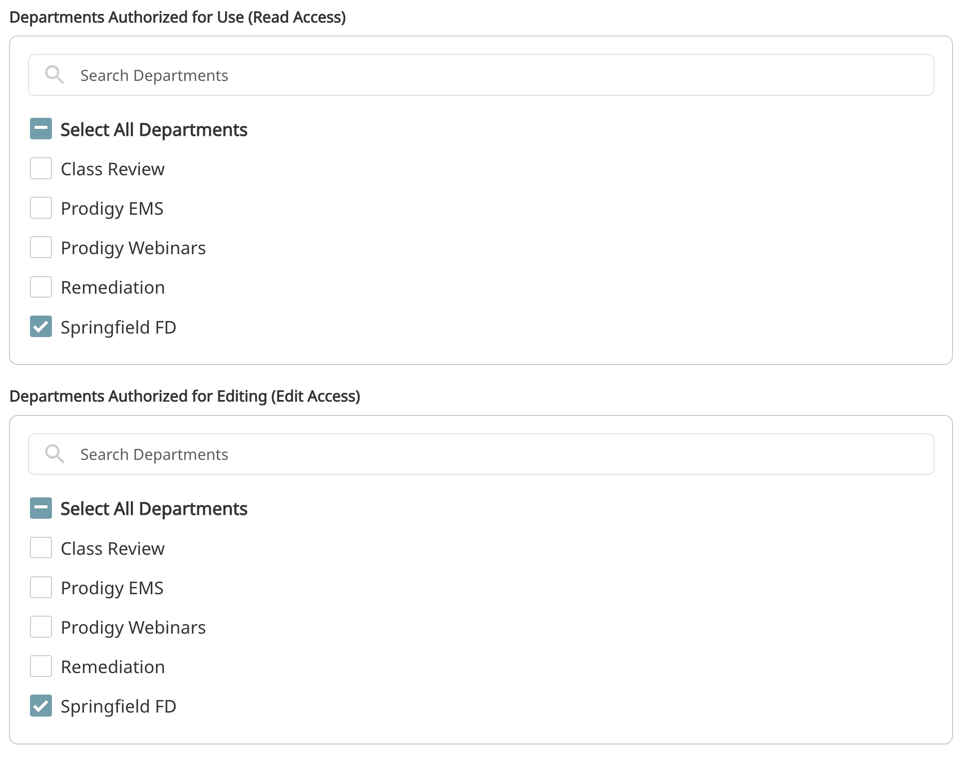 This section is for users who are training officers in more than one department or for organizations. Departments with Read Access can view and assign the course. Departments with Edit Access have full control over the class.